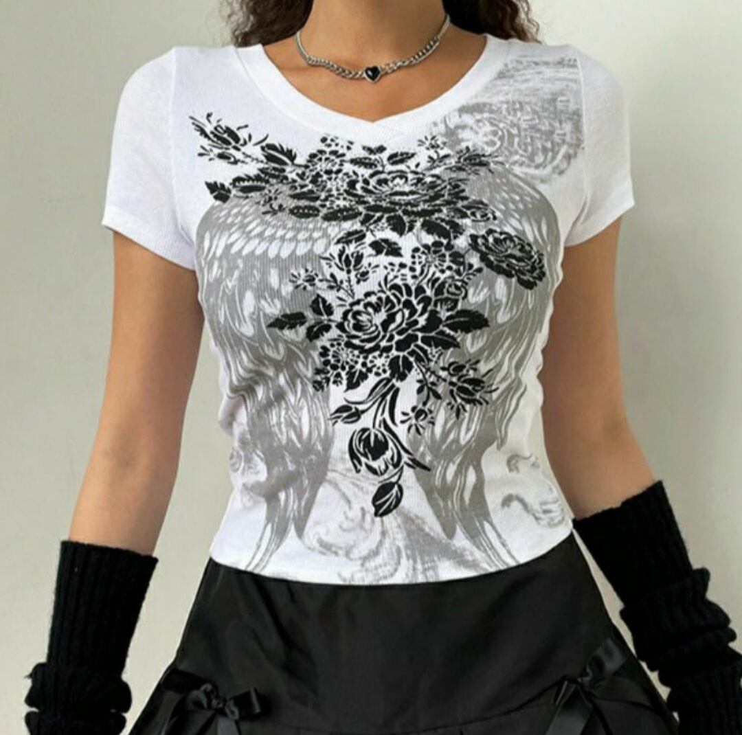 ROSE&WING SHORT SLEEVES T / GOTHIC ARMS