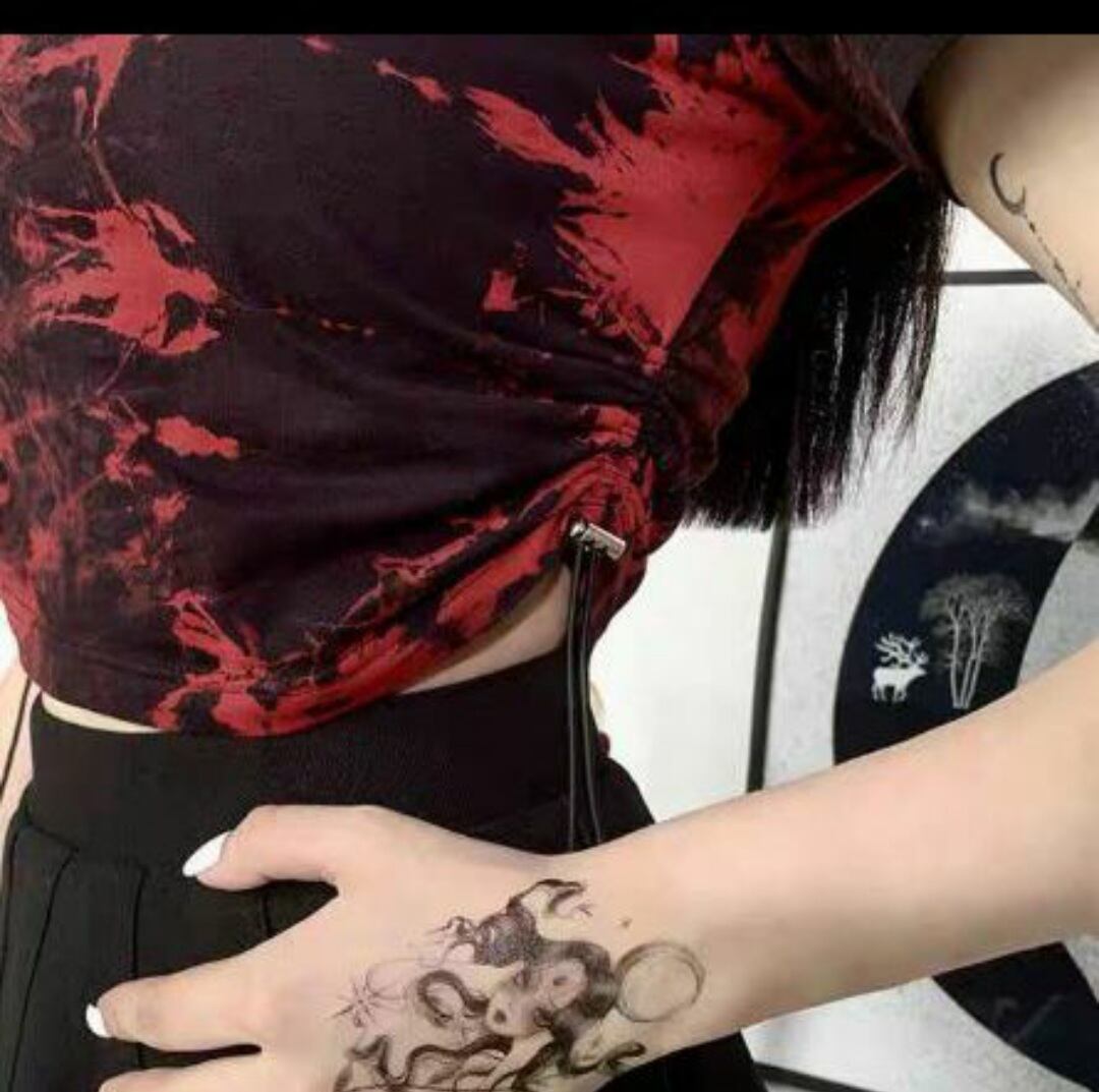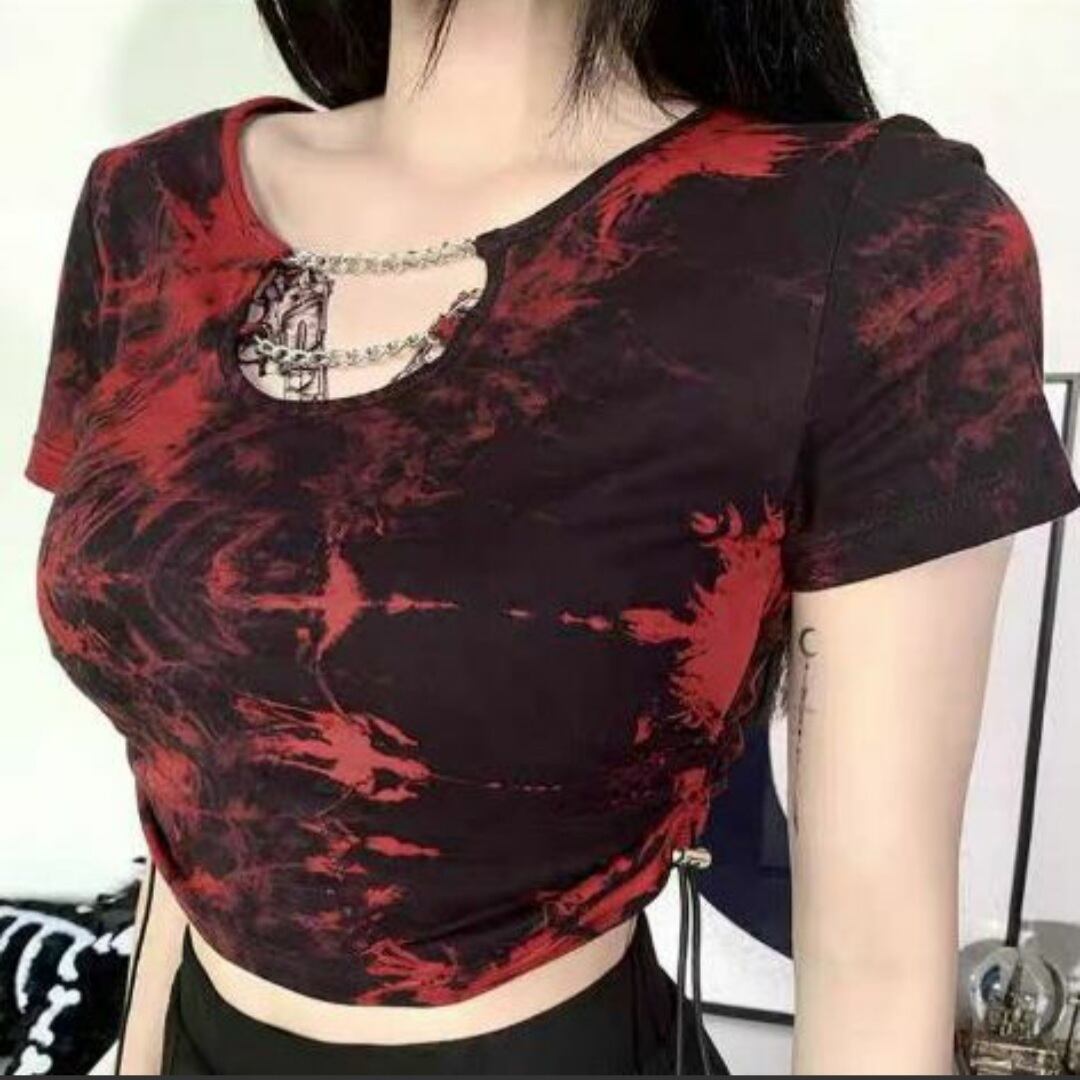 U-NECK&CHAIN SHORT SLEEVED TOP / GOTHIC ARMS