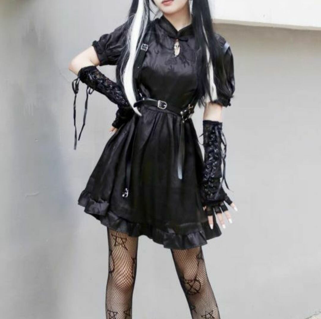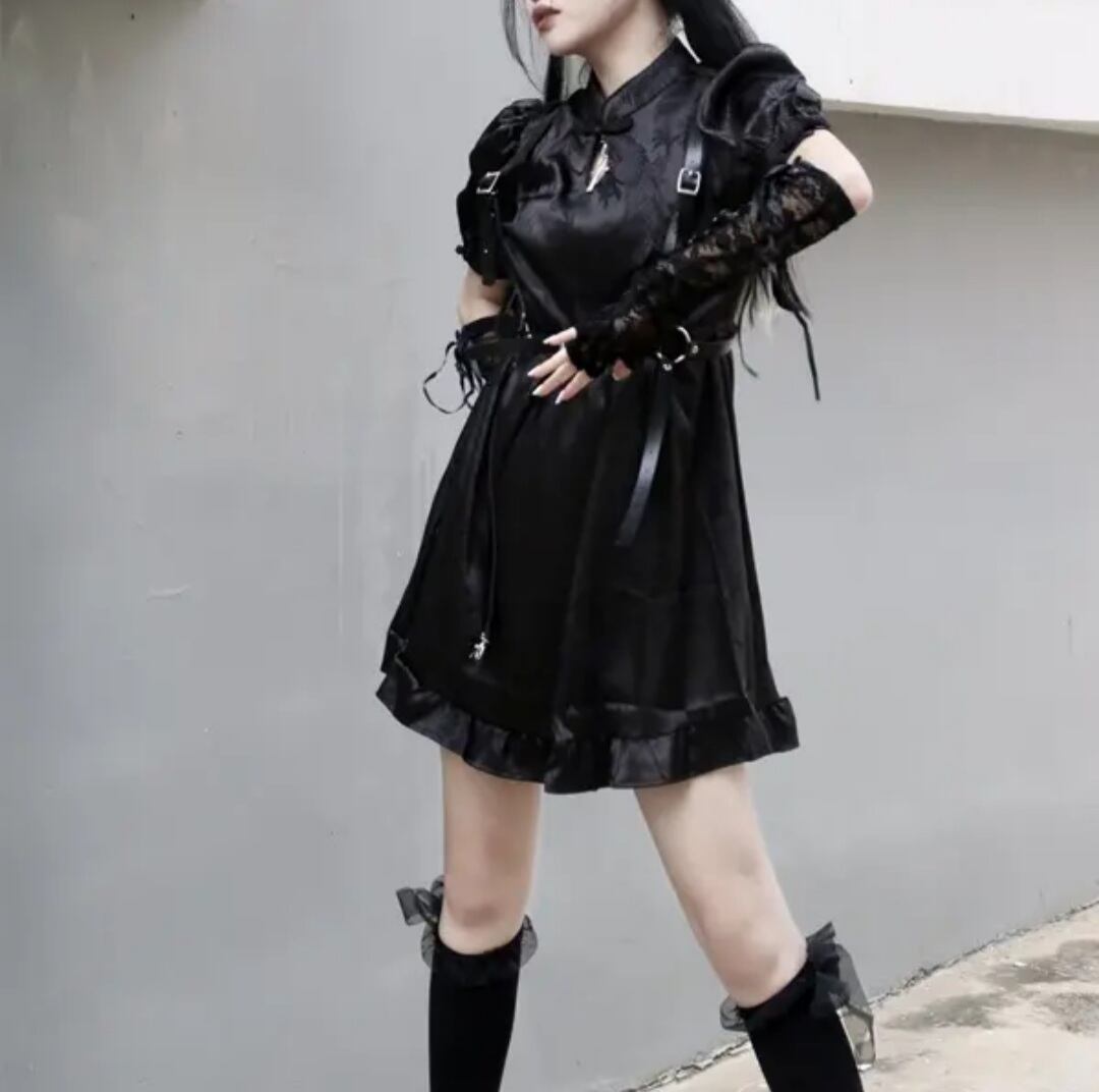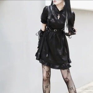 LATHER BELT BANDAGE SHORT DRESS / GOTHIC ARMS