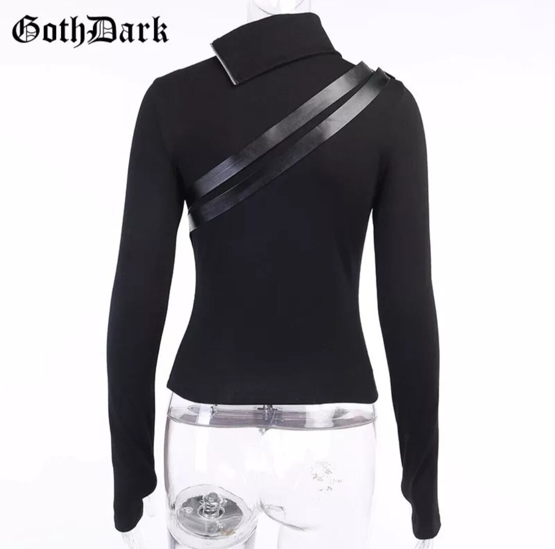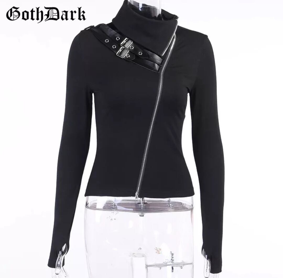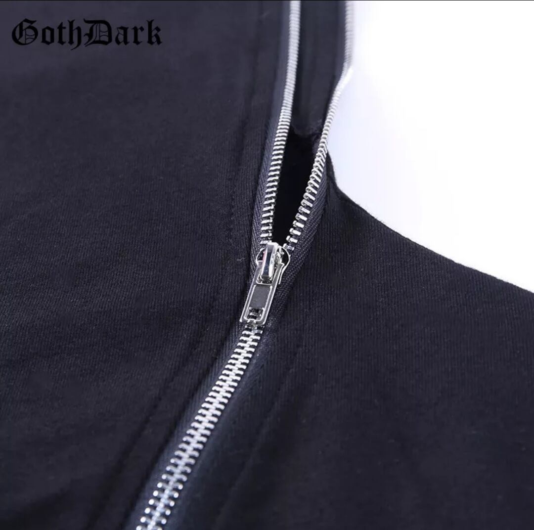 GOTH DARK / FRONT-ZIPP&BELT PATCHWORK TOP / GOTHIC ARMS