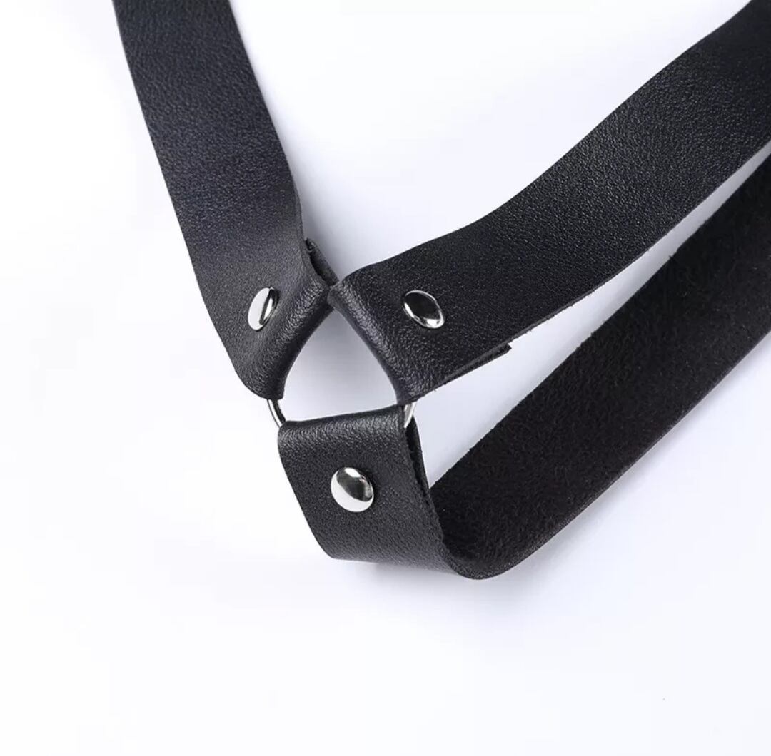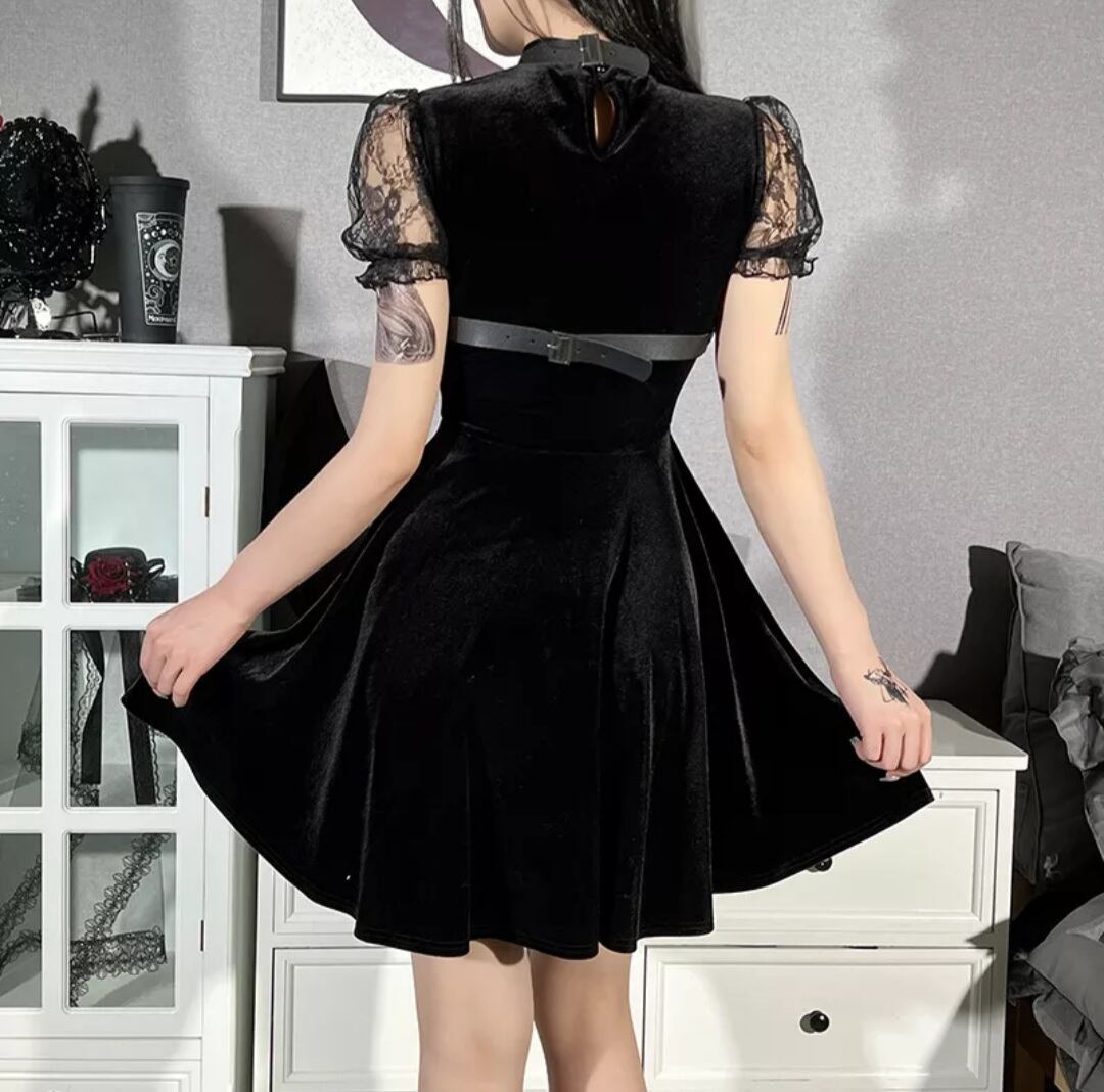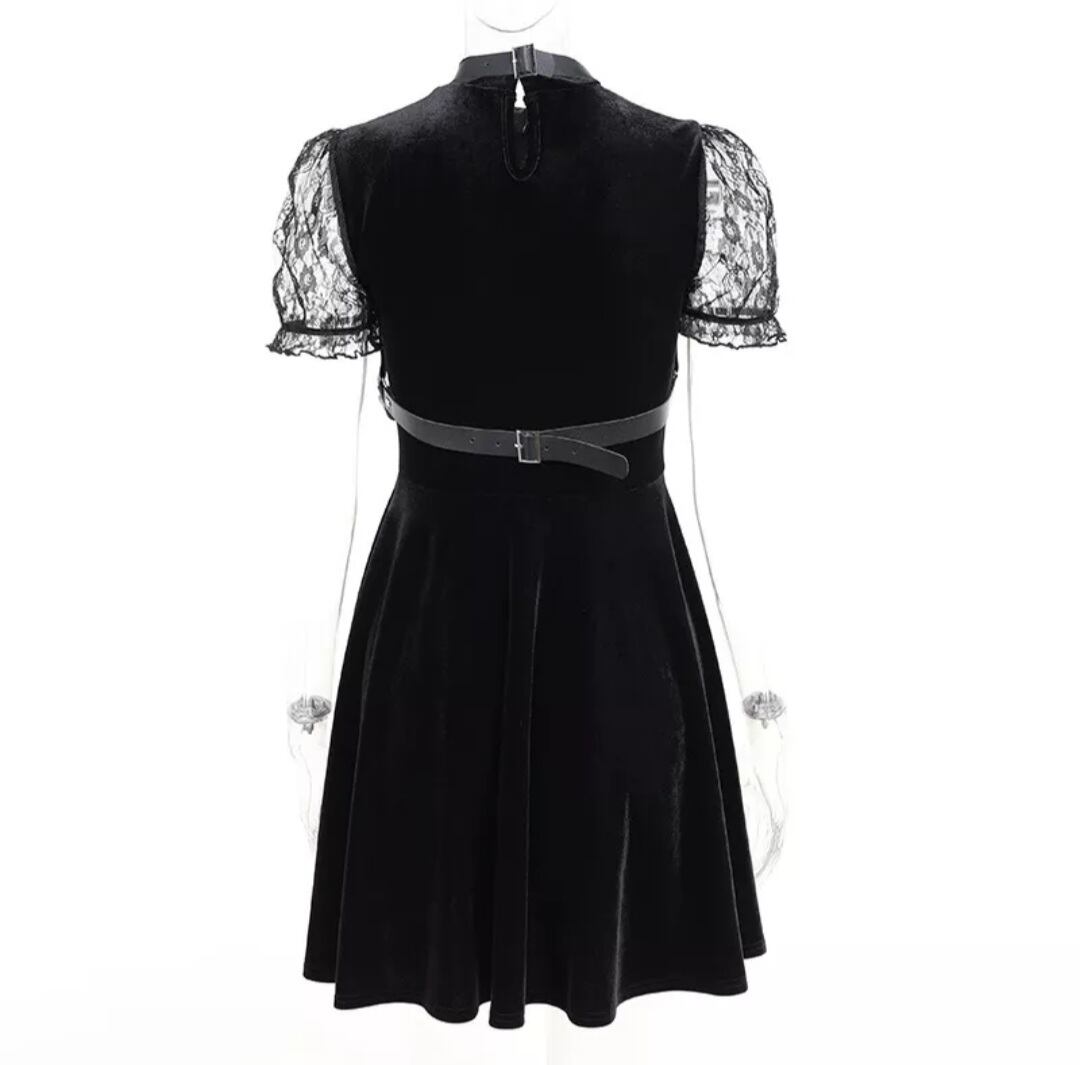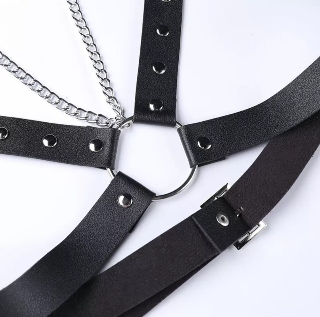 GOTH DARK / PU LEATHER PENTAGRAM STRAP DRESS / GOTHIC ARMS