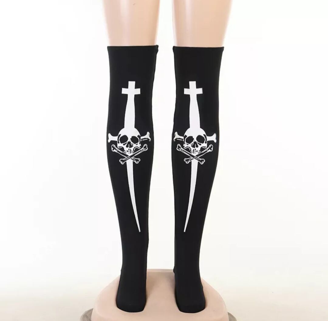 GOTH DARK / SKULL PRINT LONG SOCKS / GOTHIC ARMS