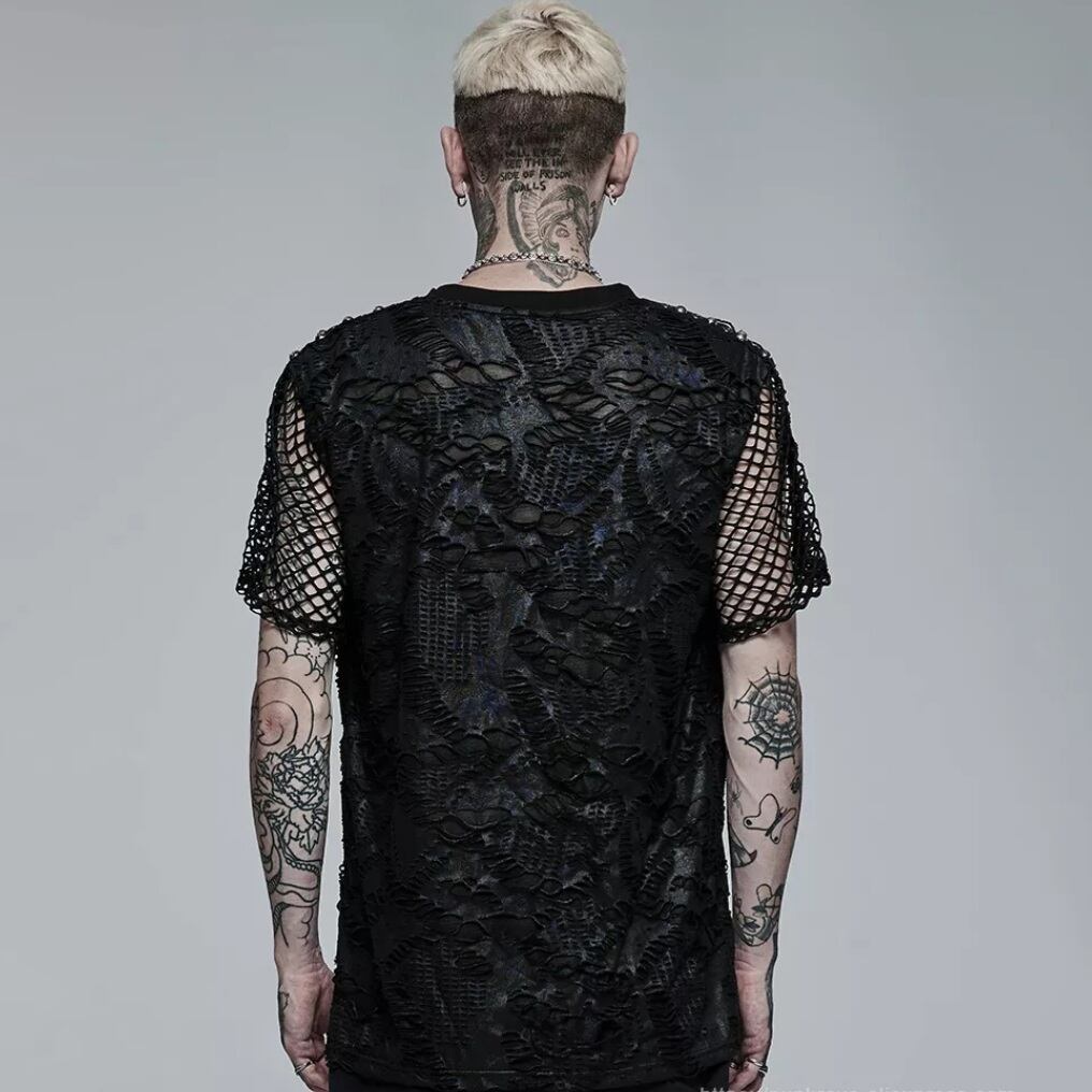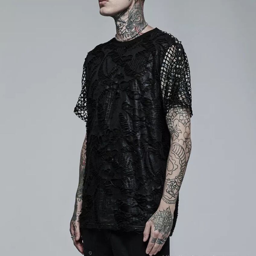 PUNK RAVE / GOTH DAILY WEAR KNITED BROKEN HOLES T-SHIRT / GOTHIC ARMS